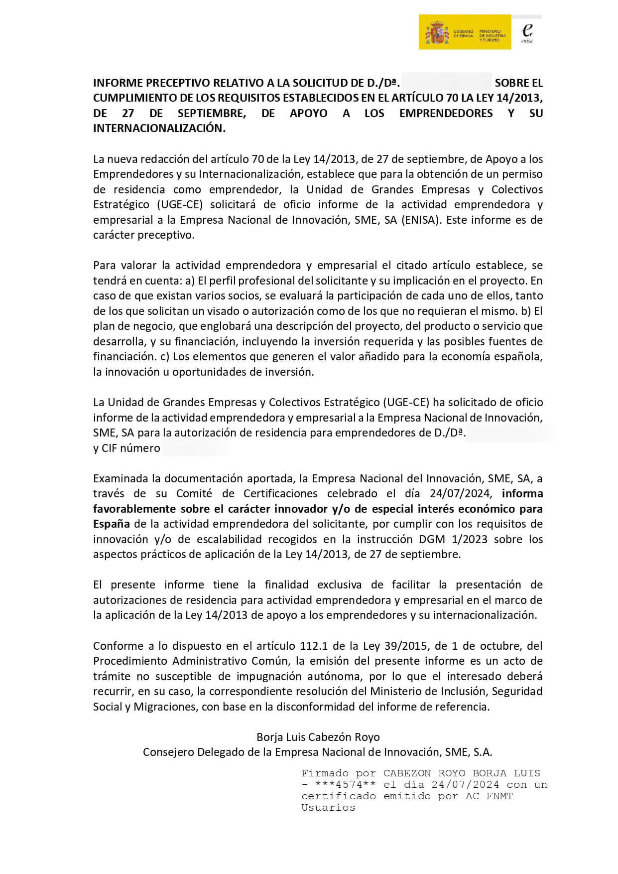 *Орган, который отвечает за рассмотрение бизнес-проектов в Испании
